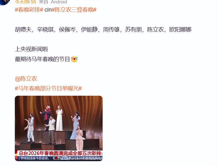 这八位王人不是流量明星,但其中有好几位王人是被国台办年年表扬过的爱国艺东谈主,八东谈主沿途登台的寓意也挺好。