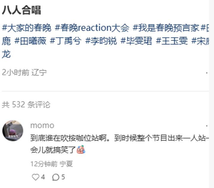不管如何,服气春晚导演王人有我方的宅心,但愿网友照旧别对这些节方针编排太过于尖刻了吧!