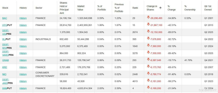 花旗还裁减了对GrabHoldings(GRAB.US)、SPDR标普区域银行ETF(KRE.US)以及蔚来(NIO.US)等的合手仓限度,联系看法合手仓降幅多在70%至90%区间。此外,多只限度较小的债务或优先证券也在本季度被进一步压缩。